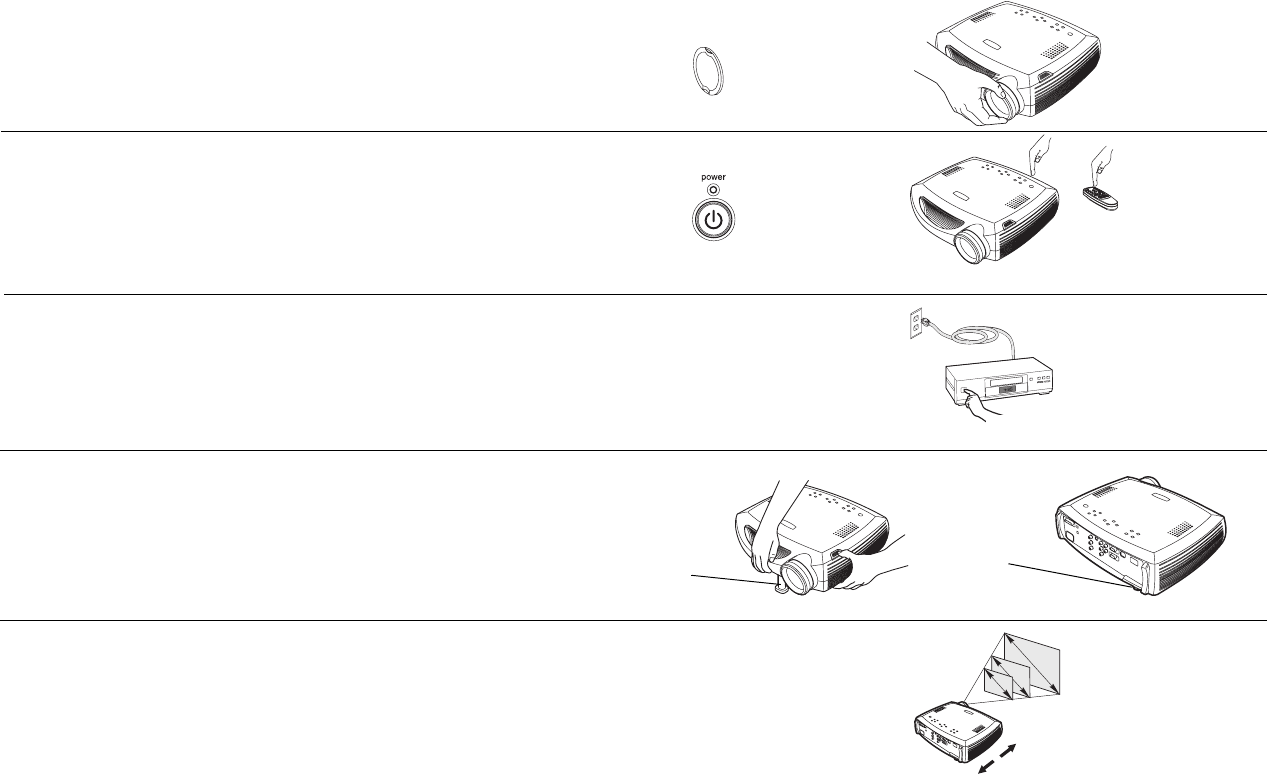 angle to the screen. See page 41 for a table listing screen sizes and distances